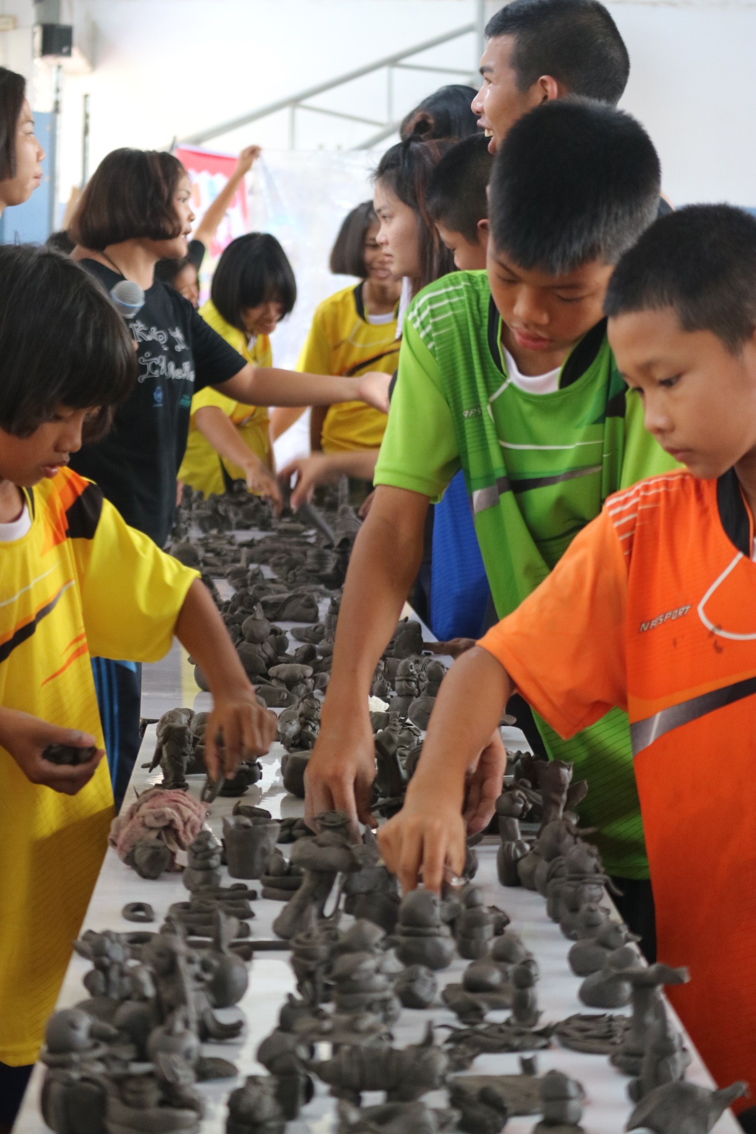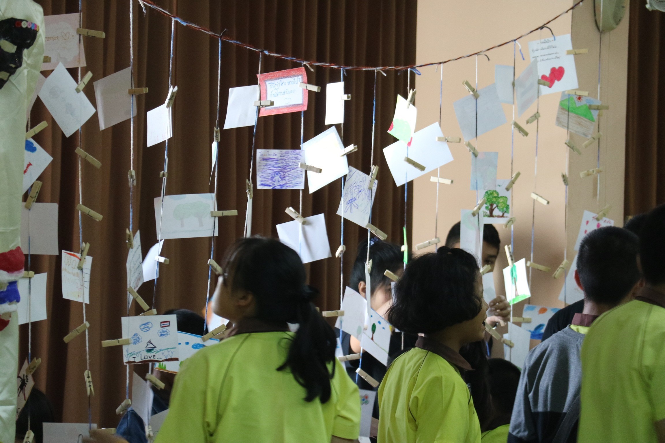 เด็ก ๆ ได้เนรมิตพื้นที่ในแต่ละโรงเรียนมาตกแต่งเป็นพื้นที่แสดงงานนิทรรศการศิลปะสร้างสุข ต่างช่วยเตรียมงานกันขยันขันแข็ง ซ้อมการแสดงละคร ซ้อมดนตรี ติดตั้งผลงานนิทรรศการศิลปะ และเตรียมซุ้มกิจกรรมศิลปะสร้างสุขเพื่อฝึกการเป็นผู้นำกิจกรรมให้ผู้ชมซึ่งเป็นเพื่อนในโรงเรียนของตนเอง บางโรงเรียนมีผู้เข้าร่วมชมงานมากกว่า 600 คน เพื่อเปิดโอกาสให้ผู้อื่นได้สัมผัสและสร้างประสบการณ์แห่งความสุขด้วยการปิดซุ้มทำกิจกรรมศิลปะ ปั้น วาด เขียนโปสการ์ดส่งมอบกำลังใจให้กันและกัน ในจุดลงทะเบียน มีถุงน้ำใจแบ่งปันสื่อ เสื้อ สมุดบันทึก อาหารว่างที่ผลิตเองเพื่อมอบให้เพื่อน ๆที่มาร่วมงาน เป็นบรรยากาศงานที่เด็กเป็นเจ้าของงาน ทั้งจัดงาน นำเสนอ แบ่งปัน ดูแลกันและกัน จากเด็กที่เพื่อนหรือครูเห็นว่าไม่มีศักยภาพ ก็กล้าก้าวเข้ามาสู่การแสดงศักยภาพที่ดี เป็นผู้นำในทางสร้างสรรค์ เป็นผู้ให้แบ่งปัน หยิบยื่นสิ่งดี ๆให้ผู้อื่นได้