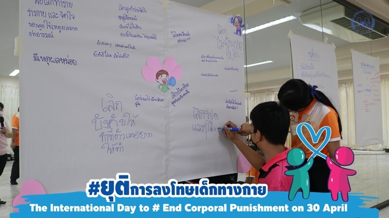 มีภาคีเครือข่ายผู้บริหารและครูโรงเรียนคุ้มครองเด็ก 4 ภาค ร่วมรณรงค์เปลี่ยนรูปโปรไฟล์ ใส่กรอบรูปยุติการลงโทษเด็กทางกาย ถ่ายรูปกับป้ายคำรณรงค์ และโพสต์ลงสื่อโซเชียล เพื่อแสดงพลัง และมีเสียงของเด็กจากแกนนำเด็กเยาวชน ตำบลท่าลาน อำเภอบ้านครัว จังหวัดสระบุรี ด้วยการส่งเสียงถึงผู้ใหญ่เป็นข้อความ บอกให้ผู้ใหญ่รับรู้ว่าพวกเขารู้สึกอย่างไร กับการลงโทษทางกายและความรุนแรงทุกรูปแบบ
