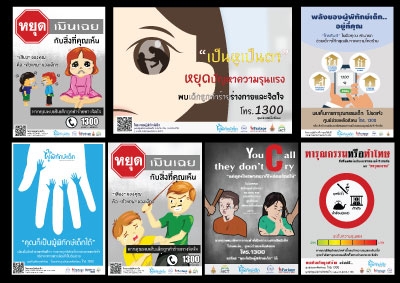 โปสเตอร์รณรงค์ชุดพิเศษเพื่อร่วมกันรณรงค์ให้บุคคลทั่วไปที่อยู่แวดล้อมเด็ก ตั้งแต่พ่อแม่ ผู้ปกครอง ครู คนในชุมชน คนในสังคม และประชาชนทั่วไปได้มีส่วนร่วมกันดูแล คุ้มครองเด็ก ให้เด็กได้รับความปลอดภัย