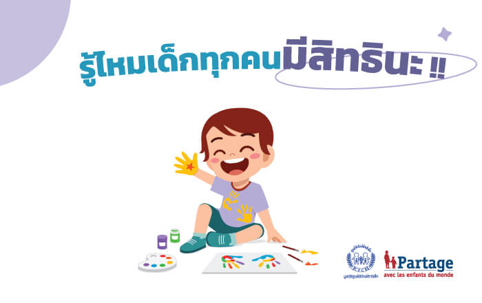 รู้ไหมเด็กทุกคนมีสิทธินะ !! เด็กทุกคนมีสิทธิ สิทธิเหล่านี้ถูกเขียนไว้ใน อนุสัญญาว่าด้วยสิทธิเด็กแห่งสหประชาชาติ ประเทศไทยลงนามภาคยานุวัติรับรอง