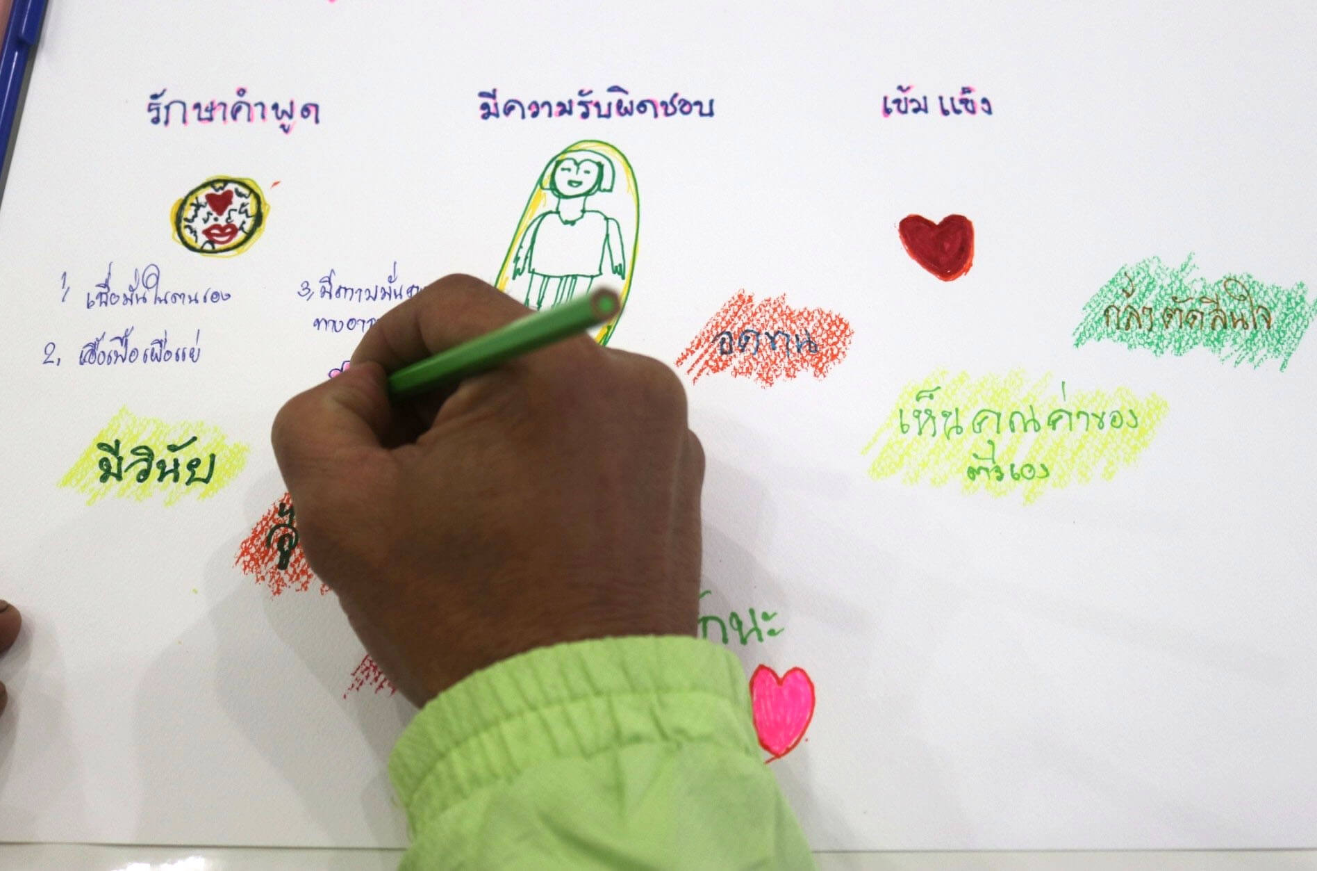 "เล่นแบดมินตันกับแม่ที่หน้าบ้าน" "เดินเล่นกับพ่อแม่" "ปลูกต้นไม้ยามเย็นกับแม่" "อยากให้พ่อเลิกเหล้า และไม่อยากให้มีข่าวฆ่าชิงทรัพย์บ่อยๆ" เมื่ออาสาถามเด็กถึงช่วงเวลาที่เด็กๆ
