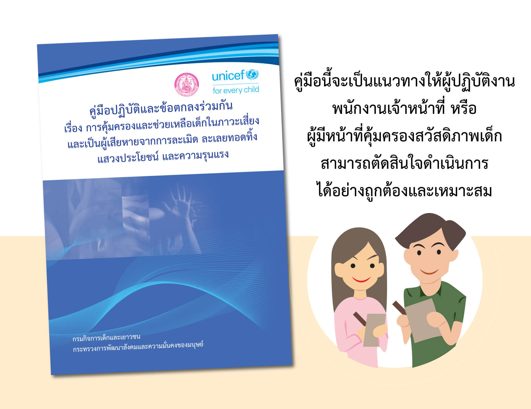 คู่มือปฏิบัติและข้อตกลงร่วมกัน เรื่อง การคุ้มครองและช่วยเหลือเด็กในภาวะเสี่ยงและเป็นผู้เสียหายจากการละเมิด ละเลยทอดทิ้ง แสวงประโยชน์ และความรุนแรง