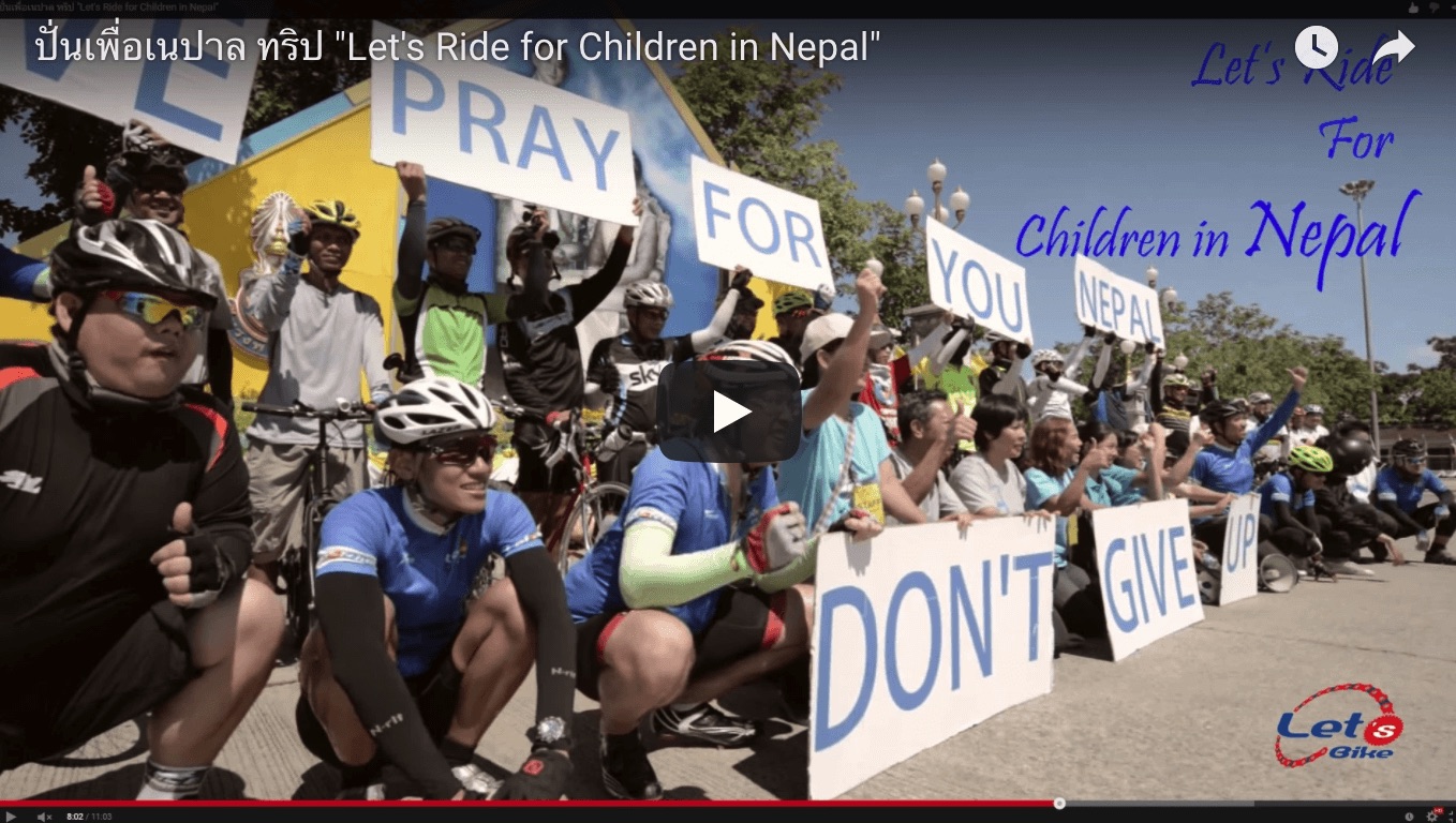 ประมวลภาพกิจกรรมปั่นเพื่อเนปาล ทริป "Let's Ride for Children in Nepal" ที่จัดขึ้นเมื่อวันที่ 17 พฤษภาคม 2558 ซึ่งเป็นความร่วมมือของหลายๆส่วน นำโดย ร้านจักรยาน Let's Bike มูลนิธิศูนย์พิทักษ์สิทธิเด็ก และบ. พีทูวี กรุ๊ป ขอบคุณทุกๆการช่วยเหลือและการสนับสนุนค่ะ