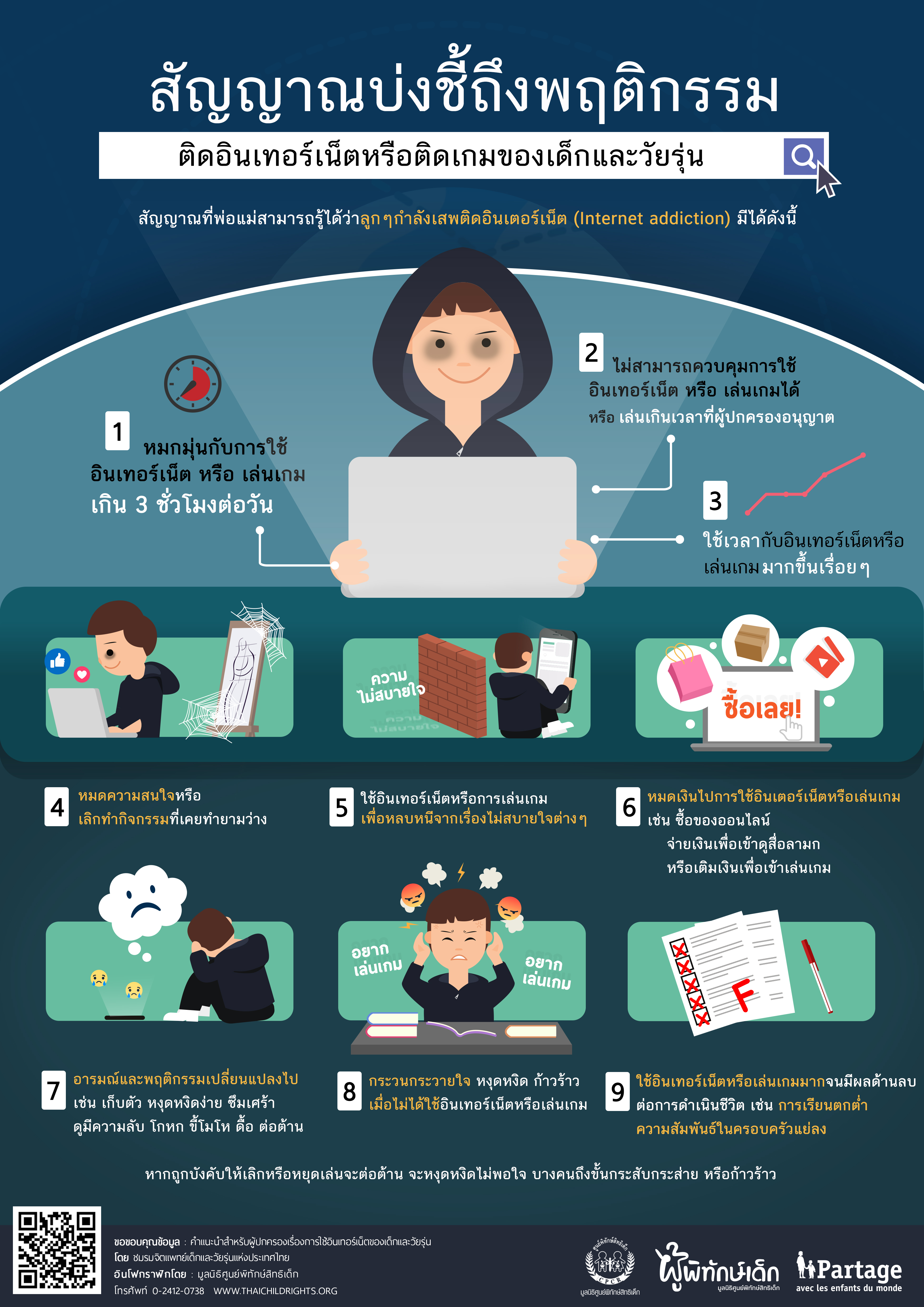 ขอขอบคุณข้อมูล : คำแนะนำสำหรับผู้ปกครองเรื่องการใช้อินเทอร์เน็ตของเด็กและวัยรุ่น โดย ชมรมจิตแพทย์เด็กและวัยรุ่นแห่งประเทศไทย