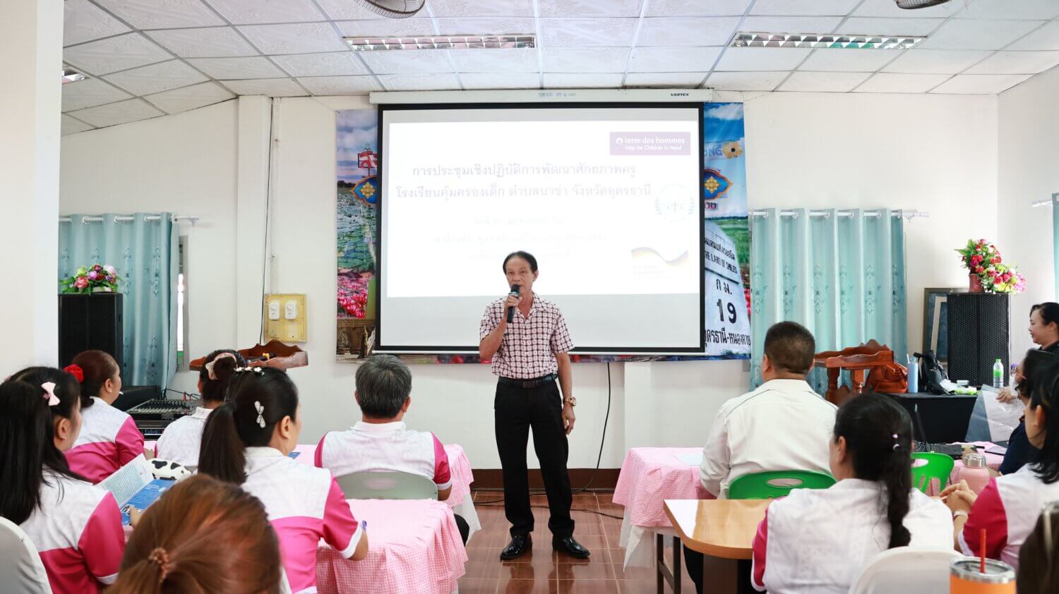 10 พฤษภาคม 2567 มูลนิธิศูนย์พิทักษ์สิทธิเด็ก ร่วมกับ องค์การบริหารส่วนตำบลนาข่า จังหวัดอุดรธานี จัดกิจกรรมอบรมเชิงปฏิบัติการ “พัฒนาศักยภาพครูโรงเรียนคุ้มครองเด็ก” ภายใต้โครงการพัฒนากลไกการคุ้มครองเด็กในตำบลและโรงเรียน พื้นที่ตำบลนาข่า อำเภอเมืองอุดรธานี จังหวัดอุดรธานี โดยมีผู้บริหารและคณะครูจากโรงเรียนบ้านนาคำหลวง โรงเรียนบ้านหมากตูมดอนยานาง โรงเรียนบ้านงอยเลิงทอง และศูนย์พัฒนาเด็กเล็ก สังกัดองค์การบริหารส่วนตำบลนาข่า จำนวนกว่า 50 คน เข้าร่วมแลกเปลี่ยนเรียนรู้ในเรื่องการทำงานคุ้มครองเด็กในโรงเรียน การรู้จักและเข้าใจนักเรียน การช่วยเหลือนักเรียน และการปฏิบัติต่อเด็กโดยไม่ใช้ความรุนแรง เพื่อให้คุณครูนำไปปรับใช้ในการดูแลเด็ก ปกป้องคุ้มครองให้เด็กนักเรียนมาโรงเรียนอย่างมีความสุข และปลอดภัย