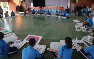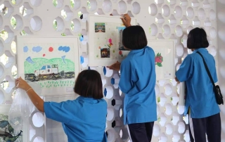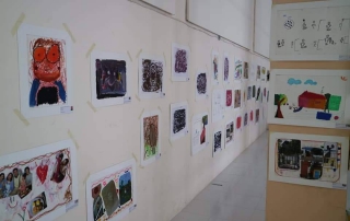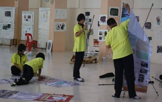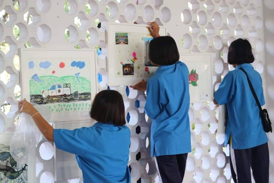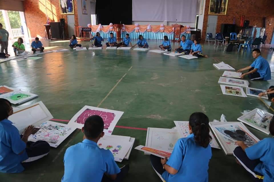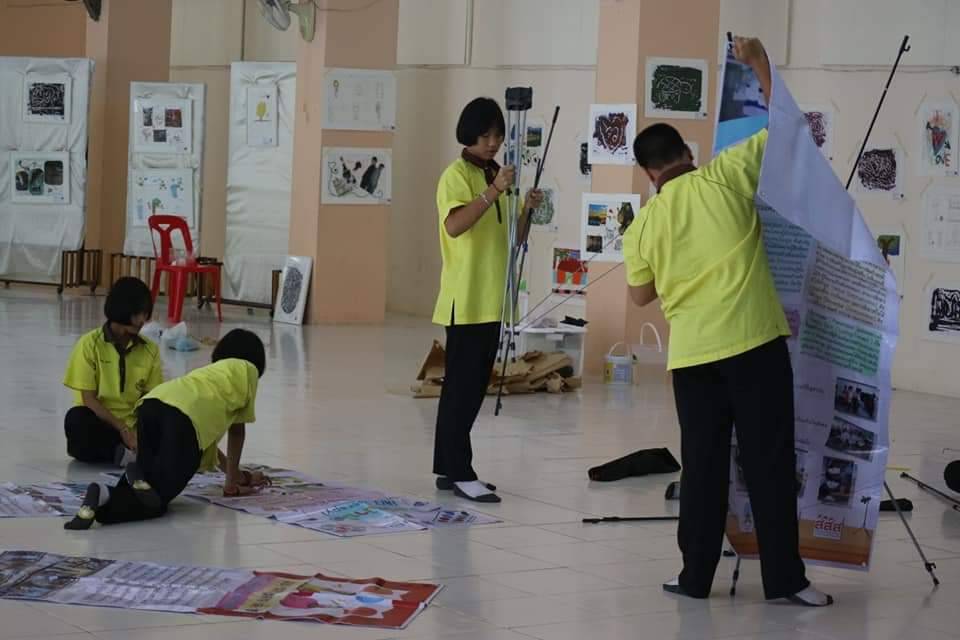 เด็ก ๆ ได้เนรมิตพื้นที่ในแต่ละโรงเรียนมาตกแต่งเป็นพื้นที่แสดงงานนิทรรศการศิลปะสร้างสุข ต่างช่วยเตรียมงานกันขยันขันแข็ง ซ้อมการแสดงละคร ซ้อมดนตรี ติดตั้งผลงานนิทรรศการศิลปะ และเตรียมซุ้มกิจกรรมศิลปะสร้างสุขเพื่อฝึกการเป็นผู้นำกิจกรรมให้ผู้ชมซึ่งเป็นเพื่อนในโรงเรียนของตนเอง บางโรงเรียนมีผู้เข้าร่วมชมงานมากกว่า 600 คน เพื่อเปิดโอกาสให้ผู้อื่นได้สัมผัสและสร้างประสบการณ์แห่งความสุขด้วยการปิดซุ้มทำกิจกรรมศิลปะ ปั้น วาด เขียนโปสการ์ดส่งมอบกำลังใจให้กันและกัน ในจุดลงทะเบียน มีถุงน้ำใจแบ่งปันสื่อ เสื้อ สมุดบันทึก อาหารว่างที่ผลิตเองเพื่อมอบให้เพื่อน ๆที่มาร่วมงาน เป็นบรรยากาศงานที่เด็กเป็นเจ้าของงาน ทั้งจัดงาน นำเสนอ แบ่งปัน ดูแลกันและกัน จากเด็กที่เพื่อนหรือครูเห็นว่าไม่มีศักยภาพ ก็กล้าก้าวเข้ามาสู่การแสดงศักยภาพที่ดี เป็นผู้นำในทางสร้างสรรค์ เป็นผู้ให้แบ่งปัน หยิบยื่นสิ่งดี ๆให้ผู้อื่นได้