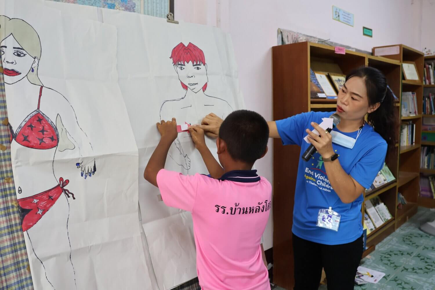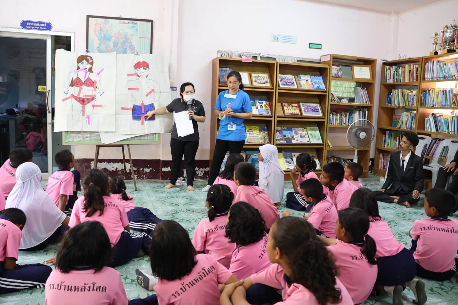เมื่อวันที่ 8-9 มีนาคม 2567 มูลนิธิศูนย์พิทักษ์สิทธิเด็ก ร่วมกับคณะทำงานศูนย์ชุมชนคุ้มครองเด็ก แกนนำเด็กและเยาวชน องค์การบริหารส่วนตำบลคลองยาง อำเภอเกาะลันตา จังหวัดกระบี่ จัดกิจกรรม “ตัวฉันเป็นของฉัน” เพื่อเสริมความรู้และทักษะการป้องกันภัยทางเพศให้กับเด็กนักเรียน ระดับชั้นประถมศึกษาปีที่ 2-6 จำนวน 31 คน ของโรงเรียนบ้านหลังโสด ตำบลคลองยาง อำเภอเกาะลันตา จังหวัดกระบี่ ให้เด็กๆ ได้มีภูมิคุ้มกันป้องกันภัยทางเพศก่อนที่จะปิดภาคเรียน ผ่านกิจกรรมที่ทำให้เด็กเห็นถึงความสำคัญของการดูแลตนเอง รู้จักอวัยวะปกปิดหรือพื้นที่ส่วนตัว ที่ไม่ให้ใครมาสัมผัส จับ ดู ดม การแยกแยะสัมผัสที่ดีและสัมผัสที่ไม่ดี เพื่อให้เด็กวิเคราะห์ถึงการสัมผัสส่วนต่างๆ ของร่างกายที่อาจนำไปสู่การล่วงละเมิดทางเพศ การรู้จักปฏิเสธ เมื่อเจอกับสถานการณ์เสี่ยงต่อความไม่ปลอดภัยด้วยหลักคำถาม 3 ข้อ รู้จักวิธีการขอความช่วยเหลือ ช่องทางหรือหน่วยงานที่รับแจ้งเหตุที่เด็กสามารถขอความช่วยเหลือได้