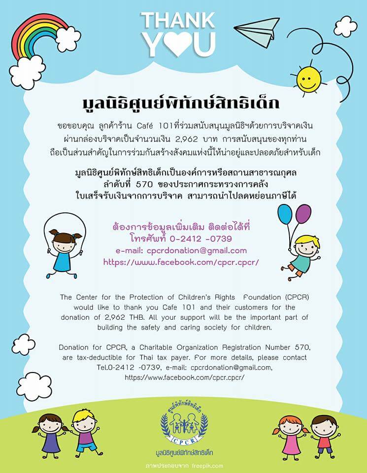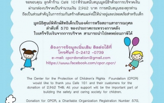 ขอบคุณมากค่ะ ทั้งคุณลูกค้าและมูลนิธิศูนย์พิทักษ์สิทธิเด็กด้วยนะคะ”