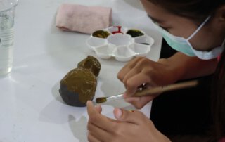 ตลอด 3 วันคุณครูได้รู้จักตนเองผ่านกระบวนการศิลปะต่างๆ ทั้งวาดรูป ระบายสี การปั้น ปะติดธรรมชาติจากดอกไม้ ใบไม้ หิน ทราย แม้กระทั่งข้าวเปลือกที่คุณครูเตรียมมาจากบ้าน ก็สามารถสร้างสรรค์เป็นผลงานศิลปะได้ …