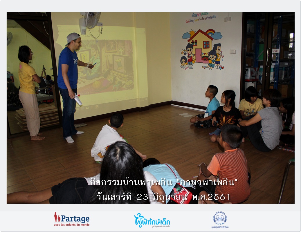 กิจกรรมบ้านพาเพลิน เมื่อวันเสาร์ที่ 23 มิถุนายนที่ผ่านมา พี่อาสาพาน้องสนุกกับกิจกรรมเกมภาษาพาเพลินทั้งภาษาไทยและภาษาอังกฤษ แต่ก่อนจะเล่นเกม มีการสื่อสารด้วยภาษาภาพ ผ่านกิจกรรมการวาดภาพ “สัตว์ที่ฉันชอบ”ด้วยสีโปสเตอร์ เด็กๆสนุกกับการเลือกสีสันและอุปกรณ์ และถ่ายทอดออกมาเป็นลายเส้นเฉพาะแบบฉบับของตัวเอง เด็กบางคนวาดช้าง แมว สุนัข ยีราฟ บางคนสามารถเชื่อมโยงลักษณะนิสัยส่วนตัวของตนเองกับสัตว์ที่ชอบได้