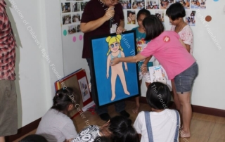 กิจกรรมที่ให้เด็กๆได้เรียนรู้เรื่องความปลอดภัยทางเพศ เริ่มจากการเรียนรู้ถึงอวัยวะในร่างกายของตนที่ต้องปกปิด ห้ามใครมาจับต้อง และได้เรียนรู้วิธีการแยกแยะ สัมผัสต่างๆทั้งดีและไม่ดี เพื่อให้เด็กสามารถแยกและบอกความรู้สึกของตน หากมีใครมาทำอะไรกับเด็กๆ ซึ่งเป็นการป้องกันภัยทางเพศอย่างหนึ่ง นอกจากนี้ยังมีกิจกรรมระดมความคิดลงมือสร้างสะพานกระดาษ ให้เด็กได้ใช้ความคิดและความสามัคคีทำงานกลุ่มร่วมกัน เพื่อให้ได้สะพานกระดาษที่ใช้งานได้ และแข็งแรงที่สุด