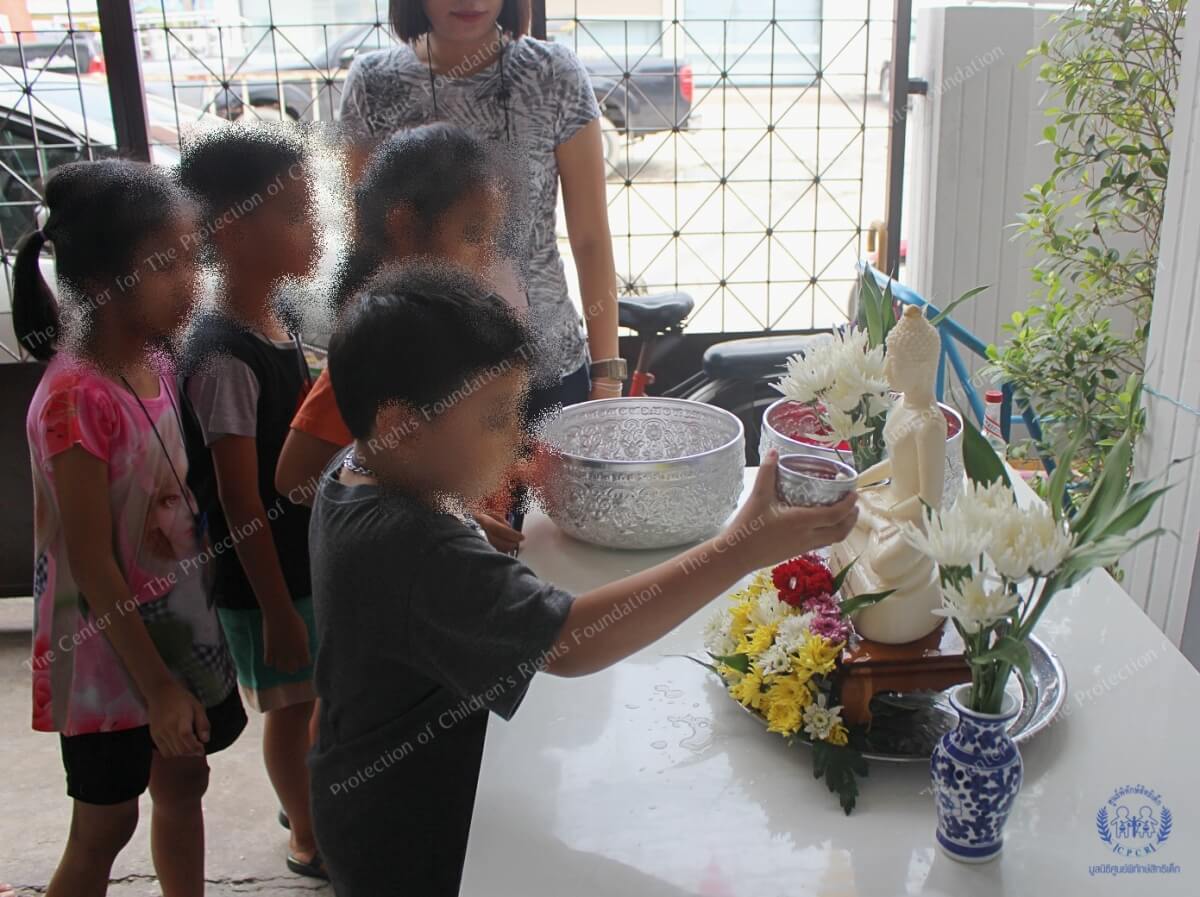 การจัดกิจกรรมในครั้งนี้สอดคล้องกับช่วงเทศกาลสงกรานต์ ซึ่งเป็นประเพณีสำคัญของไทย อาสาสมัครฯและมูลนิธิฯ จึงร่วมสืบสานประเพณีไทย ด้วยการชวนผู้ใหญ่ในชุมชนมาบอกเล่าเรื่องราวของชุมชนและประเพณีสงกรานต์แต่อดีต ให้กับลูกหลานเด็กรุ่นใหม่ได้ฟัง โดยได้รับเกียรติจากคุณเลขากรรมการชุมชนโค้งกระเทียม และคุณลุงมาเป็นผู้ใหญ่ใจดี ที่คอยตอบคำถามข้อสงสัยของเด็กๆ หลังจากรับรู้เรื่องราวของชุมชน ก็ถึงช่วงเวลาสำคัญที่เด็กๆรู้สึกตื่นเต้นและสนุกสนานกับการรดน้ำขอพรจากผู้ใหญ่ ทั้งตัวแทนผู้ใหญ่ในชุมชน ผู้อำนวยการมูลนิธิฯ ตัวแทนอาสาสมัคร เด็กหลายคนไม่มีโอกาสได้ทำ จึงรู้สึกดีและประทับใจ