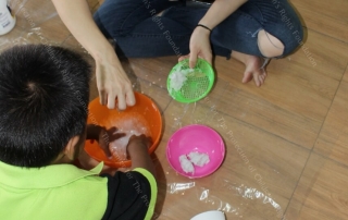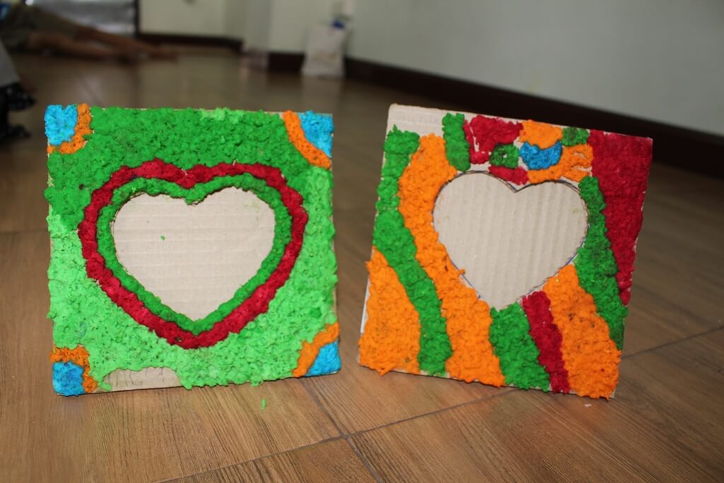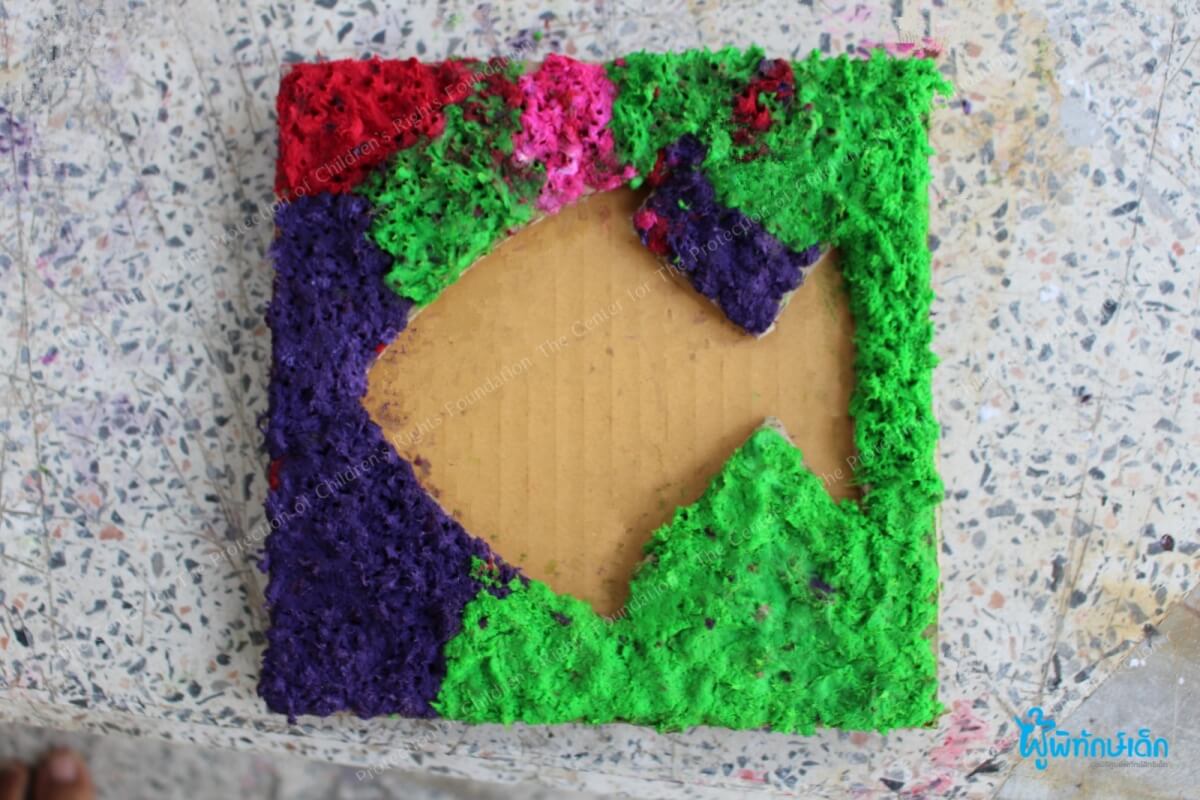 สนุกด้วยสร้างภาพจากลายเส้น จากเส้นยึกยือวนไปวนมา ไขว้กันไปมา เด็กๆสามารถจินตนาการออกมาเป็นภาพต่างๆ ได้อย่างอัศจรรย์ เช่น เต่า ต้นคริสต์มาส ปลาฉลาม คนใส่หมวก ฯลฯ และต่อด้วยกิจกรรมประดิษฐ์กรอบรูปแฟนซีจากวัสดุเหลือใช้อย่างกล่องกระดาษลัง แต่งแต้มสีสันและลวดลายด้วยกระดาษทิชชูสี ที่เด็กๆต้องแช่น้ำ ขยำทิชชู ผสมสี ทำเองทุกขั้นตอน