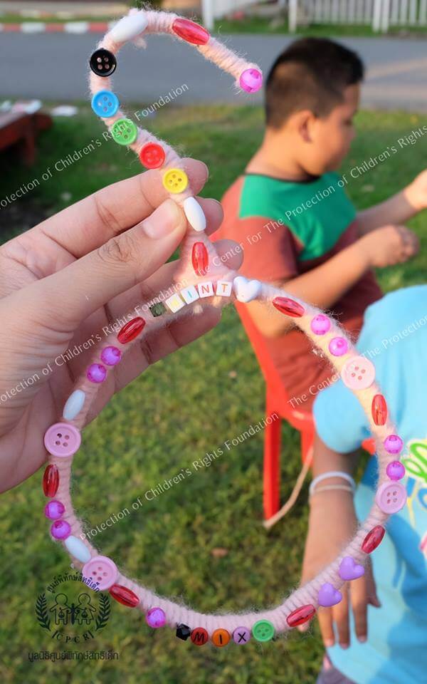 - ซุ้มไม้แขวนเสื้อแปลงร่าง : พี่ๆอาสาสมัคร นำไม้แขวนเสื้อที่ไม่ได้ใช้งาน มาดัดเป็นรูปทรงต่างๆ แล้วชวนน้องๆตกแต่งด้วยไหมพรม ลูกปัด เลื่อมสี กระดุมดอกไม้พลาสติก กลายเป็นงานประดิษฐ์ชิ้นเก๋ไก๋ ใช้แขวนของได้อย่างสวยงาม