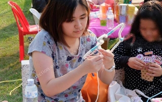 - ซุ้มประดิษฐ์พวงกุญแจ : แม่อาสาในชุมชน ชวนน้องร้อยลูกปัดสร้างเป็นพวงกุญแจ ได้ฝึกสมาธิ พัฒนากล้ามเนื้อมัดเล็กและจินตนาการของเด็กเป็นอย่างดี
