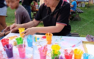 - ซุ้มศิลปะพาเพลิน : พี่ๆอาสาสมัครผู้พิทักษ์เด็ก นำน้องๆสร้างสรรค์การ์ดสวยๆจากสีผสมอาหาร เด็กๆสนุกกับการวาดลวดลายและแต่งแต้มสีสันให้กับการ์ดใบน้อย