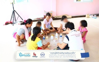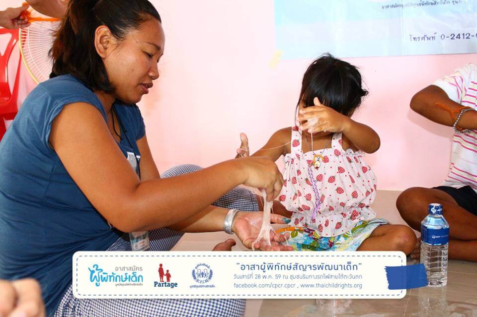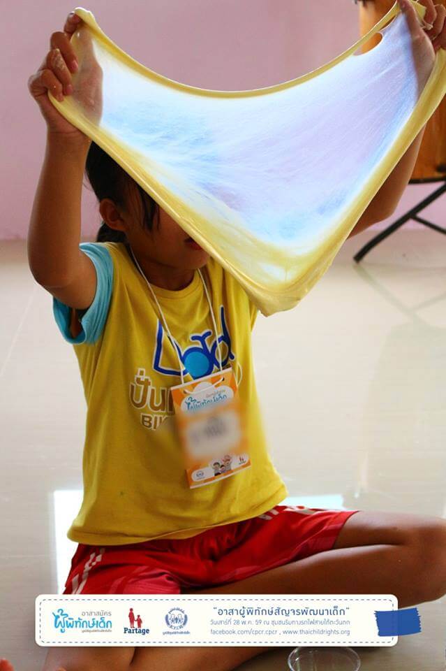 เมื่อวันเสาร์ที่ผ่านมา (28 พ.ค. 59) อาสาสมัครผู้พิทักษ์เด็กสัญจรลงไปทำกิจกรรมกับน้องๆในชุมชนริมทางรถไฟสายใต้ตะวันตก พุทธมณฑลสาย 2 กิจกรรมส่งเสริมพัฒนาเด็กที่พวกเราลงไปทำครั้งนี้ เป็นการสร้างสัมพันธ์ทำความรู้จักกับน้องๆในชุมชนและพี่ๆอาสาสมัคร กิจกรรมเริ่มจาก การแนะนำตัว เล่นเกมส์สร้างความคุ้นเคย ละลายพฤติกรรม จากนั้นก็ชวนน้องๆทำสไลม์ หรือน้ำลายเอเลี่ยน ที่ทำมาจากกาวน้ำ ผสมสารที่ทำให้กาวจับตัว ตกแต่งให้สวยงามด้วยกากเพชร และสีผสมอาหาร (เนื่องจากวัตถุดิบที่ใช้ในการทำกิจกรรมไม่สามารถรับประทานได้ จึงควรระวังกับการที่เด็กที่จะนำเข้าปาก และต้องมีวิธีแนะนำการเล่นอย่างเหมาะสมด้วยค่ะ)