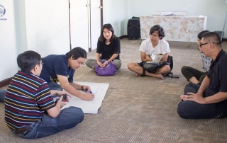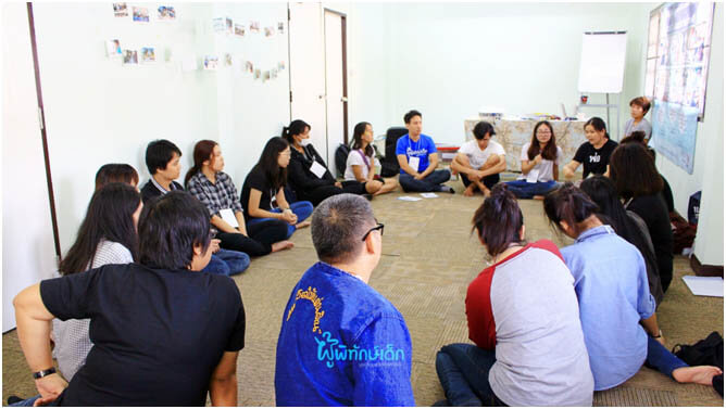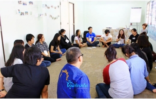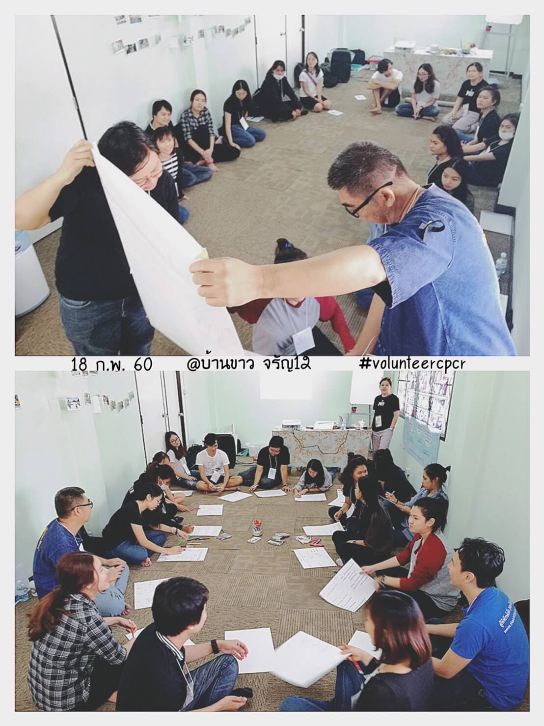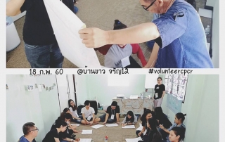 วันที่ 18 กุมภาพันธ์ ที่ผ่านมาเหล่าผู้พิทักษ์เด็ก จำนวน 18 คนมารวมตัวกันเพื่อร่วมเรียนรู้ เตรียมความพร้อมตนเองและช่วยกันออกแบบกิจกรรมสำหรับส่งเสริมพัฒนาเด็ก โดยมีการอบรมเกี่ยวกับพัฒนาการเด็กในแต่ละช่วงวัย ผ่านกระบวนการเรียนรู้และเข้าใจตนเอง นอกจากนี้ในการอบรมมีการทดลองทำกิจกรรมส่งเสริมพัฒนากล้ามเนื้อมัดเล็กของเด็ก เช่น ศิลปะภาพปะติด นอกจากจะได้ใช้กล้ามเนื้อมือในการหยิบ จับ เลือก และตัดแล้ว ยังกระตุ้นให้เด็กใช้คิดสร้างสรรค์และเพิ่มความภาคภูมิใจในตัวเองเมื่อมีผลงานจากฝีมือของตนกลับบ้านไป และในวันนั้นเองอาสายังได้คิดและวางแผนกิจกรรมที่พวกเขาสนใจทำกับเด็กๆในชุมชน มีทั้งสมุดทำมือ การทำขนมอย่างง่าย ทำโมบายและกิจกรรมนักสืบชุมชน