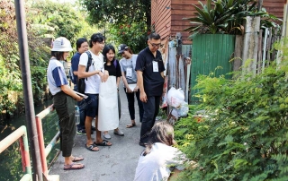 พอได้ข้อมูลก็กลับมาหลบพักร้อน สรุปข้อมูล แล้วออกไปลุยต่อ เป้าหมายต่อไป คือ ชุมชนโค้งกระเทียม แต่พวกเราเดินหลงทางไปออกอีกชุมชน คือ ชุมชนพุดวันดี แล้วสุดท้ายก็กลับมาพบชุมชนโค้งกระเทียม จนได้!