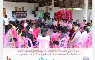 • ช่วงเช้า เวลา 10.00 – 11.30 น. ณ ศาลากลางหมู่บ้านหมู่ที่ 3 บ้านสันบัวคำ โดยมีเด็กๆและกลุ่มผู้ปกครอง อาสาสมัครสาธารณสุข และอาสาสมัครดูแลผู้สูงอายุที่บ้าน หรือ อผส. จากหมู่ที่1 และหมู่ที่ 3 เข้าร่วมโครงการ