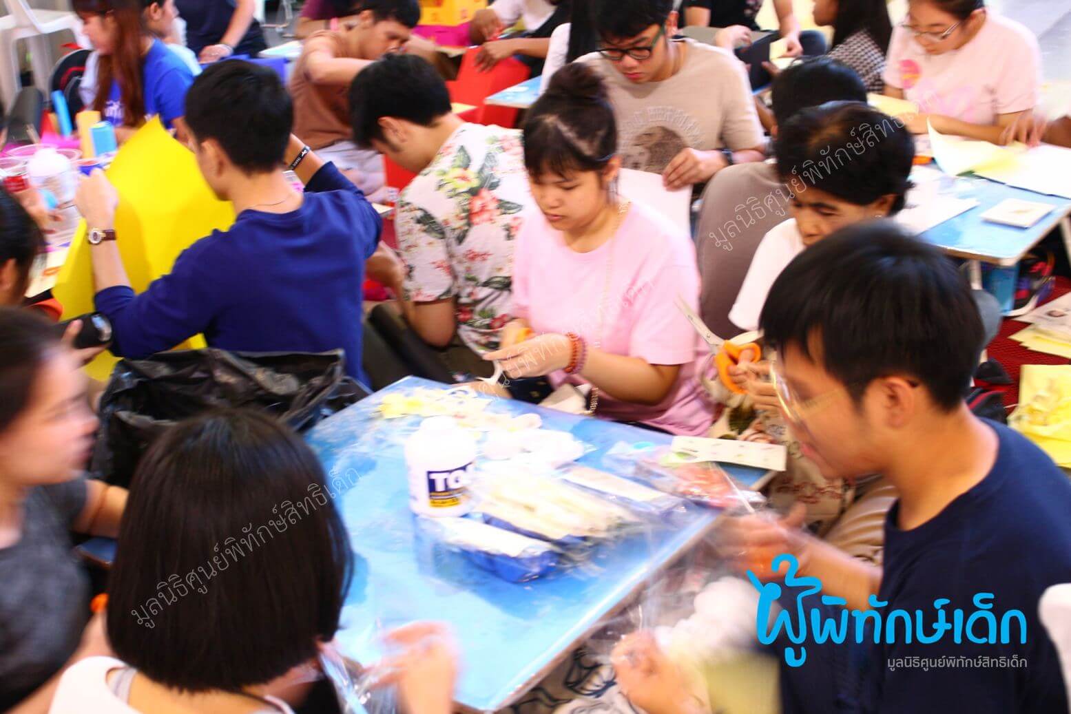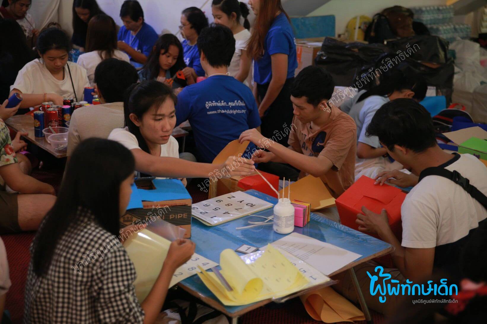 สิ่งของต่างๆเหล่านี้ถูกแปลงกายโดยเหล่าอาสาสมัครสร้างสื่อฯ ที่ทางมูลนิธิฯเปิดรับสมัคร มีนักเรียน นักศึกษาและประชาชนทั่วไปสนใจสมัครมาช่วยกันสร้างสื่อให้น้องกว่า 60 คน โดยทุกคนมารวมตัวกันในงานรวมพลผู้พิทักษ์เด็ก ซึ่งทางมูลนิธิฯจัดขึ้นเมื่อวันเสาร์ที่ 9 กรกฎาคม 2559 ที่ผ่านมา ณ เอสพลานาด แคราย งานที่เปิดโอกาสให้ทุกคนได้มีส่วนร่วมกันดูแลปกป้องคุ้มครองเด็กและส่งเสริมพัฒนาเด็กในวิถีที่เป็นอยู่