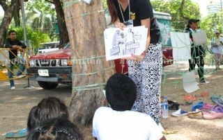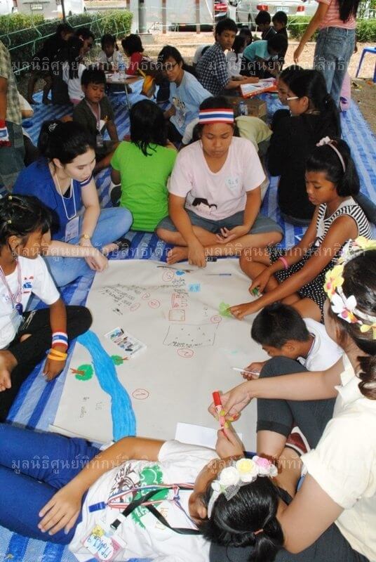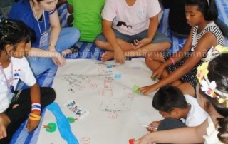 จากนั้นให้เด็กๆ สำรวจพื้นที่ที่ตนอาศัยในขณะนี้ คือ ภายในสวนลุม ว่ามีจุดใดบ้างที่เด็กๆรู้สึกว่าไม่ปลอดภัย เป็นอันตราย ซึ่งเด็กๆต่างช่วยกันวาดพื้นที่เสี่ยงต่างๆ ได้หลายจุดเช่น อาคารร้าง เกาะลอย ห้องน้ำ รวมทั้งมีการเสนอวิธีเพื่อให้ปลอดภัย เช่น เวลาไปไหนให้มีผู้ใหญ่ไปด้วย ไม่ไปตามลำพัง ไม่เข้าไปในพื้นที่นั้น เป็นต้น