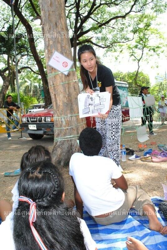 เมื่อวันที่ 25 เมษายน 2557 เจ้าหน้าที่ฝ่ายพัฒนาเด็กและครอบครัวของมูลนิธิศูนย์พิทักษ์สิทธิเด็ก นำทีมอาสาสมัครจำนวน 14 คน ลงพื้นที่จัดกิจกรรมตัวฉันเป็นของฉัน ให้กับเด็กๆเกือบ 40 คน ณ บริเวณโรงเรียนต้นไม้ สวนลุมพินี เพื่อเสริมทักษะด้านการป้องกันตนเองจากภัยทางเพศ และจากสถานการณ์เสี่ยง