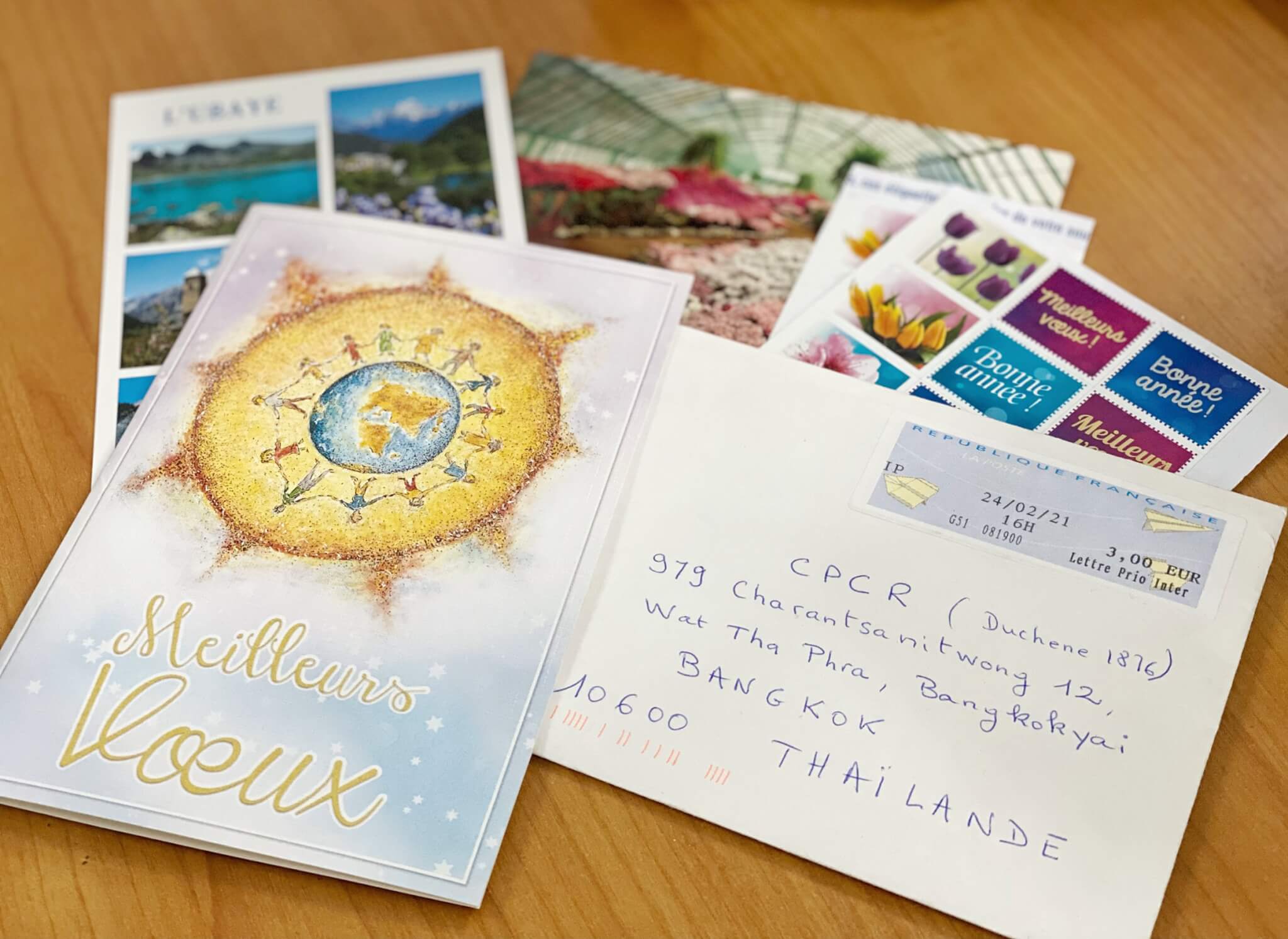 วันนี้มีการ์ดปีใหม่ที่ส่งตรงมาจากประเทศฝรั่งเศส ทีมงานได้เปิดอ่านและช่วยแปลเพื่อส่งกำลังใจให้กับพนักงานมูลนิธิฯทุกคนได้มีพลังใจในการทำงานเพื่อเด็กต่อไป