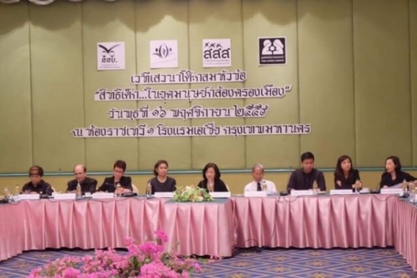 ที่โรงแรมเอเชีย เมื่อเวลา 10.00.น วันที่ 16 พ.ย.59 มูลนิธิเครือข่ายครอบครัว ร่วมกับ สถาบันสื่อเด็กและเยาวชน (สสย.) เครือข่ายครอบครัวเฝ้าระวังและสร้างสรรค์สื่อ และสำนักงานกองทุนสนับสนุนการสร้างเสริมสุขภาพ (สสส.) จัดเวทีเสวนา “สิทธิเด็ก…ในยุคมนุษย์กล้องครองเมือง” โดยมีหน่วยงานองค์กรด้านเด็กและเยาวชนเข้าร่วมแลกเปลี่ยนกว่า100คน