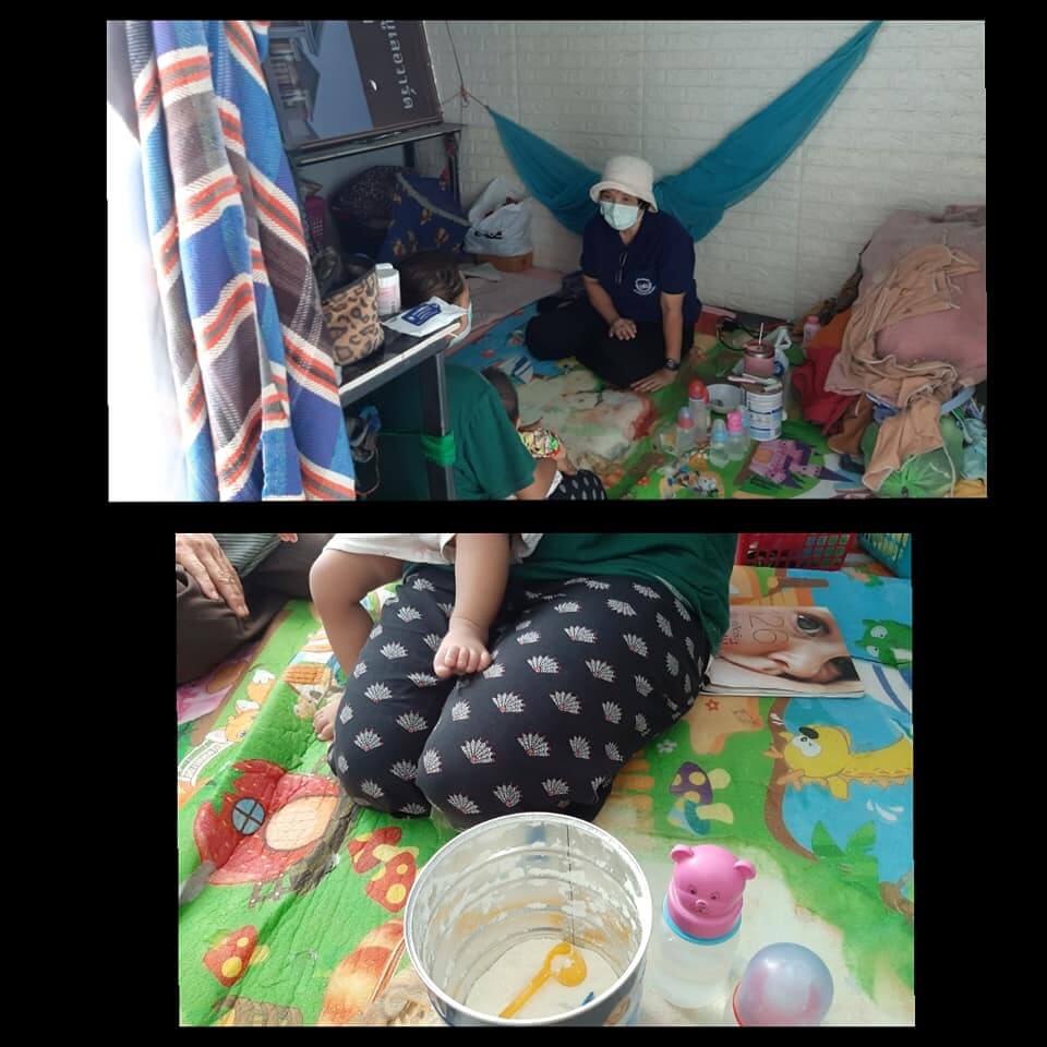 วันนี้ลงพื้นที่ไปเยี่ยมเด็กและครอบครัวที่ได้รับผลกระทบจาก COVID-19 แม่เด็กเป็นลูกจ้างในร้านซักรีด ได้ค่าจ้างตามจำนวนเสื้อที่รีดได้ มีรายได้เดือนละไม่เกิน 4,000 บาท แต่พอเกิดโควิด 19 ไม่มีคนเอาเสื้อมาให้รีดเดือนที่แล้วได้ 400 บาท สามีมีอาชีพรับจ้าง บางวันไม่ได้ทำงาน เราเตรียมข้าวสารอาหารแห้ง ของใช้ในชีวิตประจำวัน ชุดของเล่นและหน้ากากอนามัยไปให้