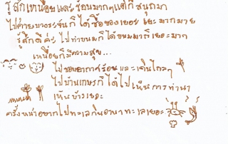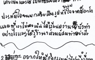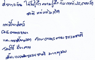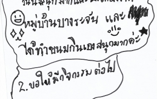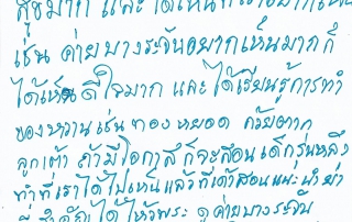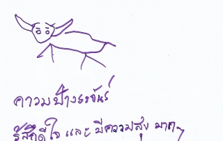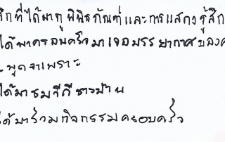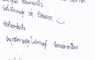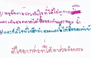 เด็กหญิงถ่ายทอดความรู้สึกของตนเองหลังจบค่ายครอบครัวเพื่อส่งเสริมการใช้ชีวิตครอบครัวร่วมกัน ครั้งนี้มีครอบครัวในความดูแลของฝ่ายบำบัดฟื้นฟูเด็กและครอบครัว มูลนิธิศูนย์พิทักษ์สิทธิเด็ก เข้าร่วม 7 ครอบครัว รวมมีสมาชิกในค่ายครั้งนี้ 25 คน