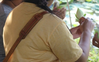 ก่อนกลับแวะชมสวนคำภาหรรษาที่อยู่ใน ตำบลทองเอน ชมเกษตรวิถีธรรมชาติ ปลูกผัก เลี้ยงแพะ กบ ปลา เก็บไข่เป็ด ชมนาข้าว นาบัว เด็กและครอบครัวได้เรียนการพับดอกบัวหลากหลายรูปแบบ ได้ข้าวห่อใบบัวกินมื้อเย็นตอนเดินทางกลับ คุณแม่ในครอบครัวเด็กวัยรุ่นคนหนึ่งบอกว่ามีความสุขกับธรรมชาติที่สงบ คิดถึงบ้านที่ต่างจังหวัด ได้เห็นวิถีชีวิตที่เรียบง่าย พึ่งพาตนเองและคิดจะนำไปปรับใช้ในชีวิตของตนเอง