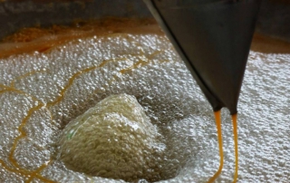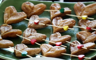 จากนั้นเราเดินทางมุ่งหน้าไปถนนสายเอเชียเส้นทางสายเหนือเพื่อไปยังกลุ่มวิสาหกิจชุมชนขนมหวานบ้านทองเอน ตำบลทองเอน อำเภออินทร์บุรี พอถึงที่หมายเราพักด้วยการดื่มน้ำใบเตยหอมเย็นชื่นใจ และให้แต่ละครอบครัวได้มีโอกาสร่วมเรียนรู้การแปรรูปผลผลิตทางการเกษตร โดยเข้าฐานเรียนรู้การทำขนมไทย ตัดกล้วยตากเสียบไม้น่ารักๆเป็นรูปหัวใจแล้วนำไปเคลือบช็อคโกแลตอร่อย ๆ ปั้นไส้มันเทศสีส้ม-สีม่วง ถั่วเหลือง แป้ง เพื่อทำขนมลูกเต๋า ใครชอบไข่ก็มาช่วยป้าตอกไข่เป็ดทำขนมฝอยทอง ทองหยอด และอันที่อร่อยง่าย หอมหวานตามธรรมชาติคือการทำกล้วยตากพลังงานแสงอาทิตย์ ที่แต่ละครอบครัวได้ทดลองเข้าไปอยู่เหมือนกล้วยในโรงตาก อยู่แค่เดี๋ยวเดียวก็ต้องวิ่งแจ้นกันออกมาเลยทีเดียวเพราะความร้อนระอุจากพลังงานแสงอาทิตย์ การตากกล้วยแบบนี้ช่วยทำให้กล้วยตาก แห้งพอดี มีสีสันสวยงามและรสชาติหวานหอมแบบธรรมชาติ แต่ละครอบครัวสลับสับเปลี่ยนช่วยกันทำขนมทุกชนิดกันสุดฝีมือ ต่างตั้งใจ สนใจซักถาม สนุกที่ได้ทำเอง กินเอง อิ่มอร่อย แถมยังได้ขนมฝีมือตัวเองติดไม้ติดมือกลับไปฝากคนที่บ้านได้อีกด้วย